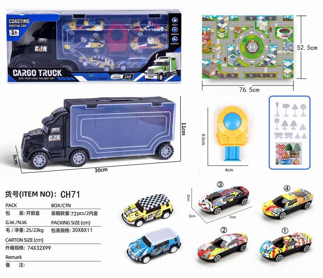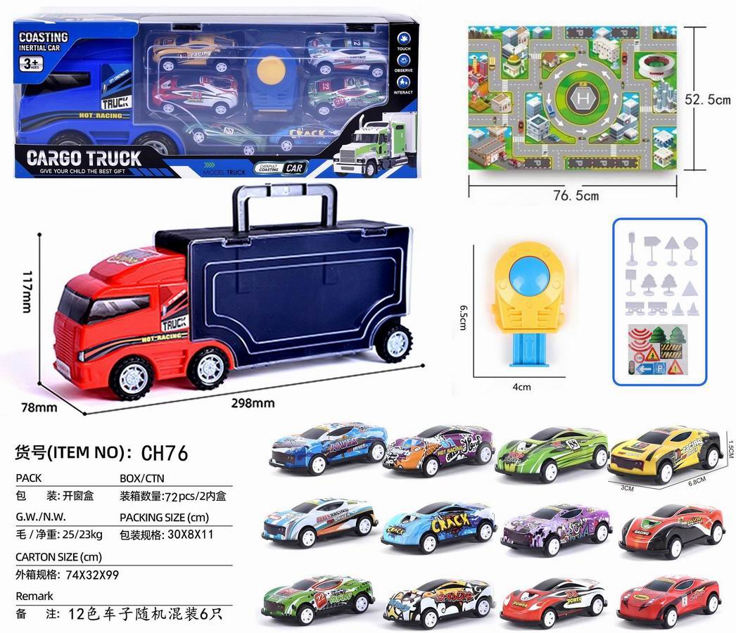 双面滑行货柜车装载6只回力AB车子大地图和路标