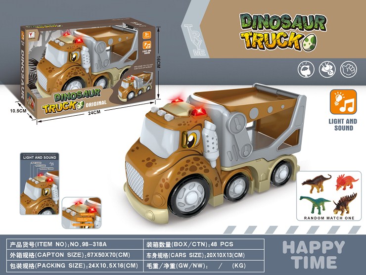 滑行卡通声光恐龙车套装