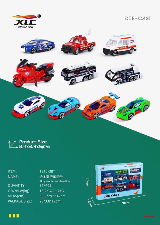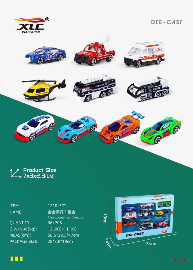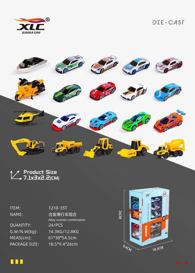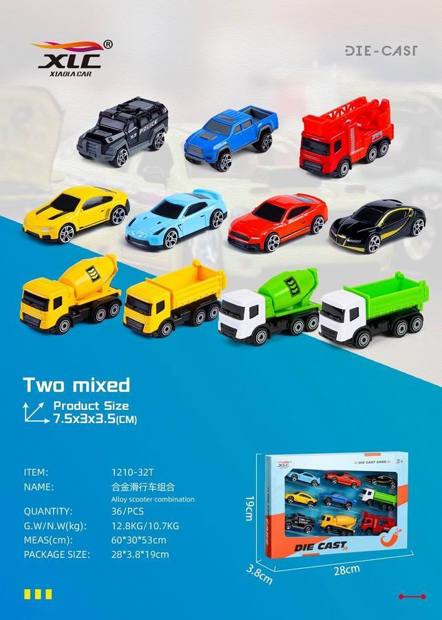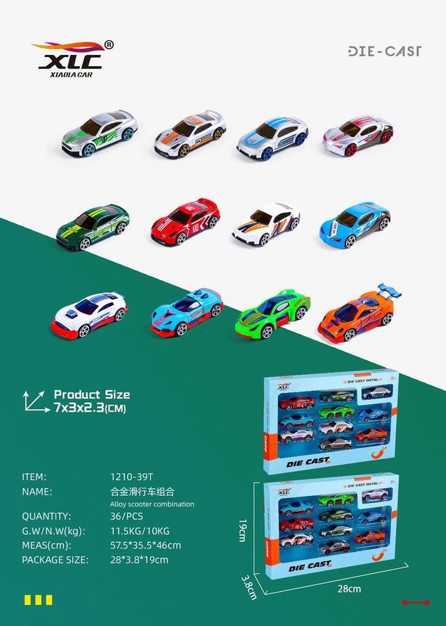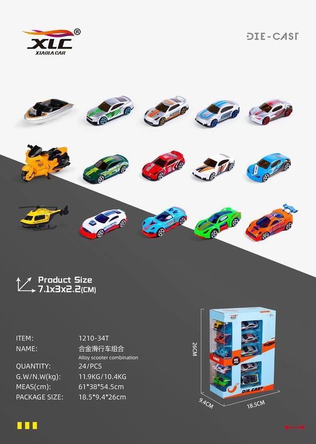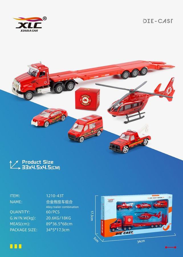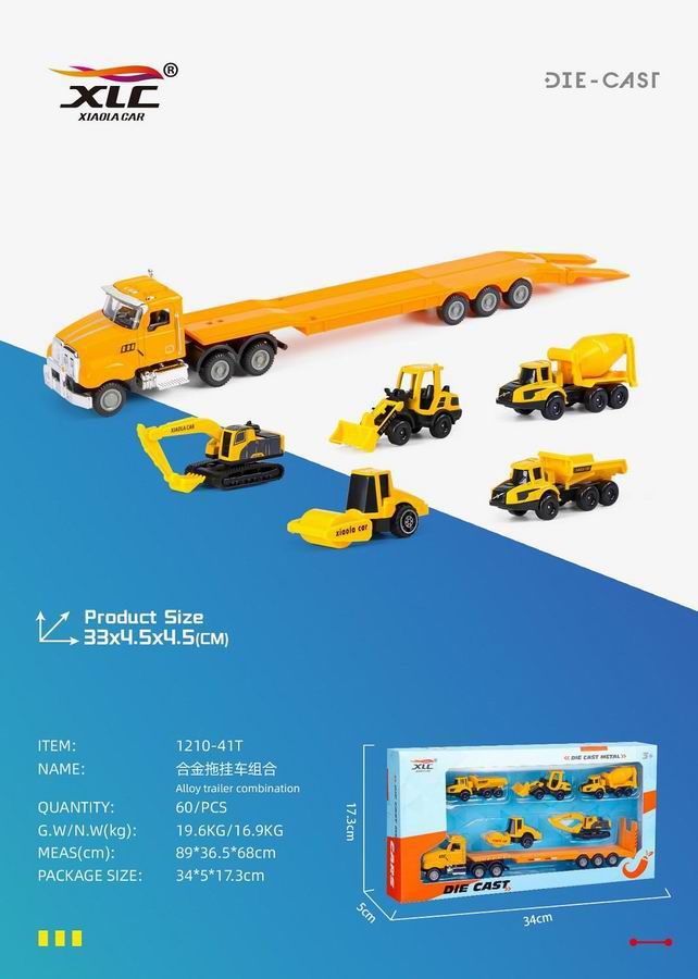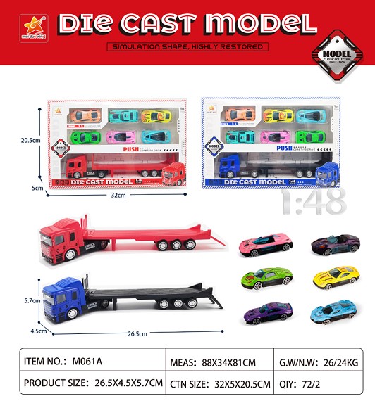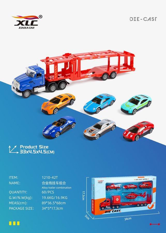 1:48滑行合金拖板+6只滑行合金跑车(2色)
