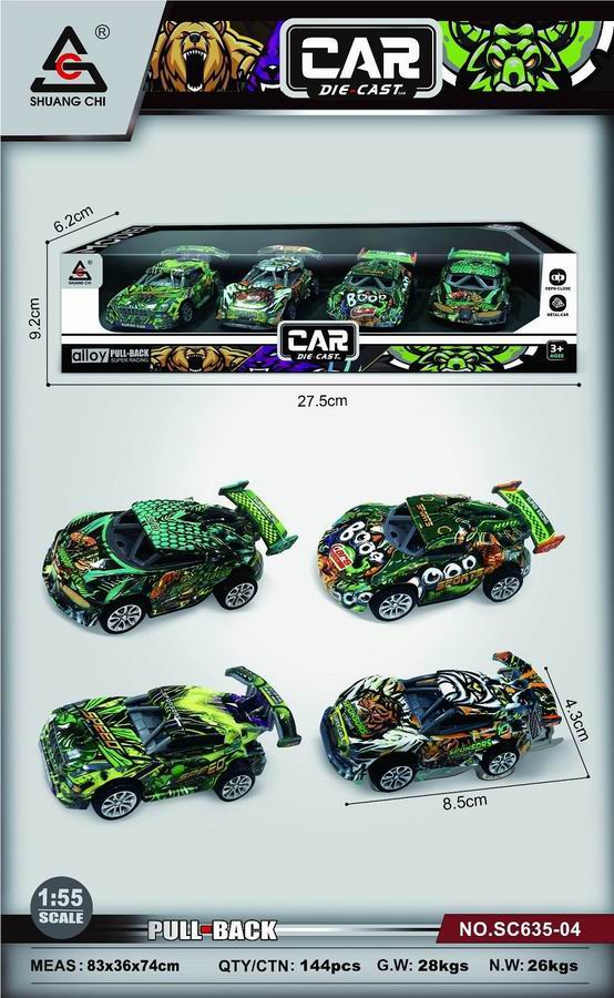 涂鸦合金骨架赛车 4只装