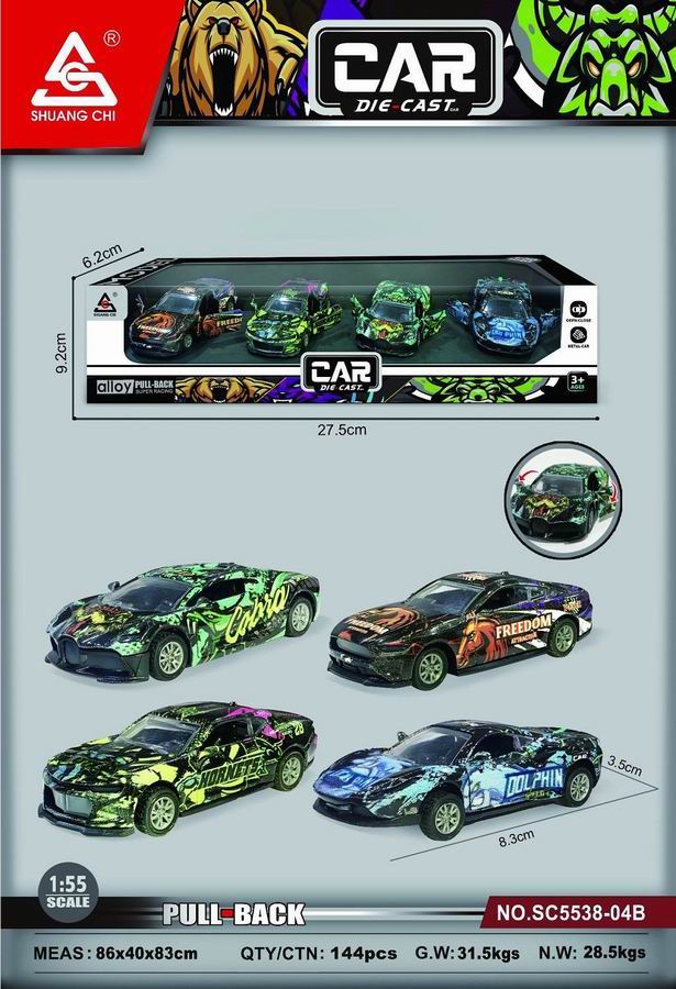 大涂鸦合金骨架赛车 4只装