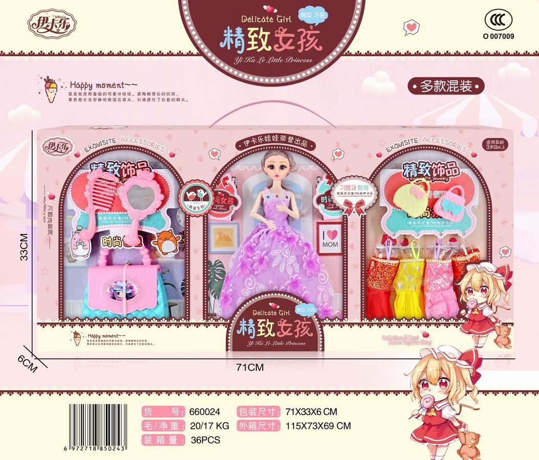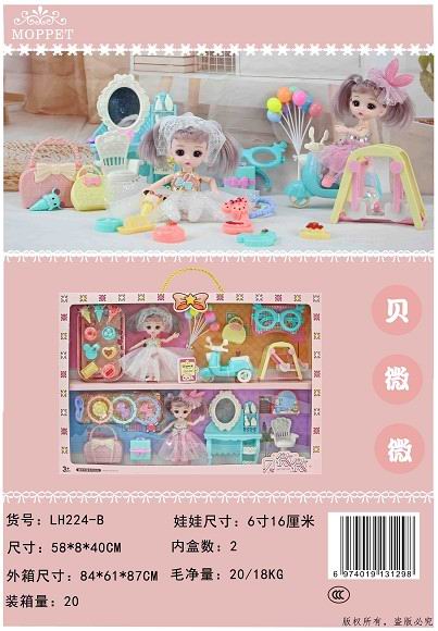 【中文贝微微】6寸16厘米 13关节 实身 3D真眼 时尚萝莉娃娃戴头饰+两个场景配件主题 |