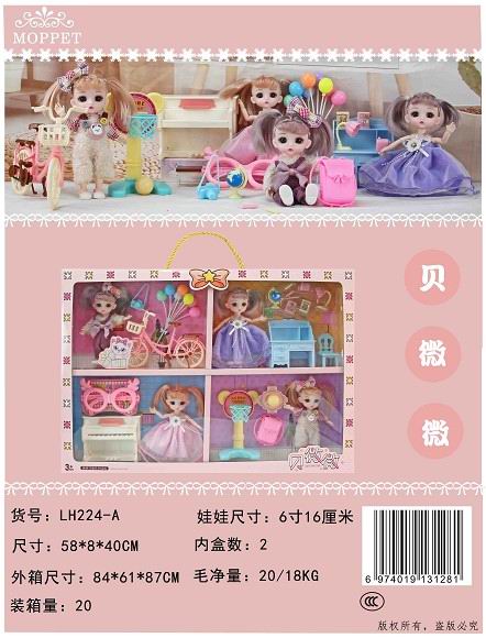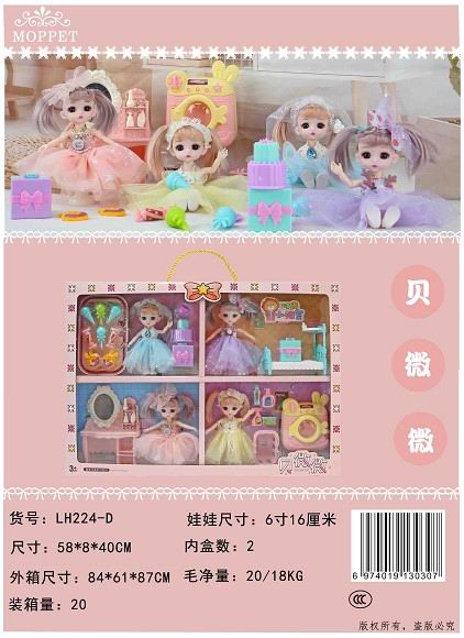【中文贝微微】6寸16厘米 13关节 实身 3D真眼 时尚萝莉娃娃戴头饰+四个场景配件主题 |