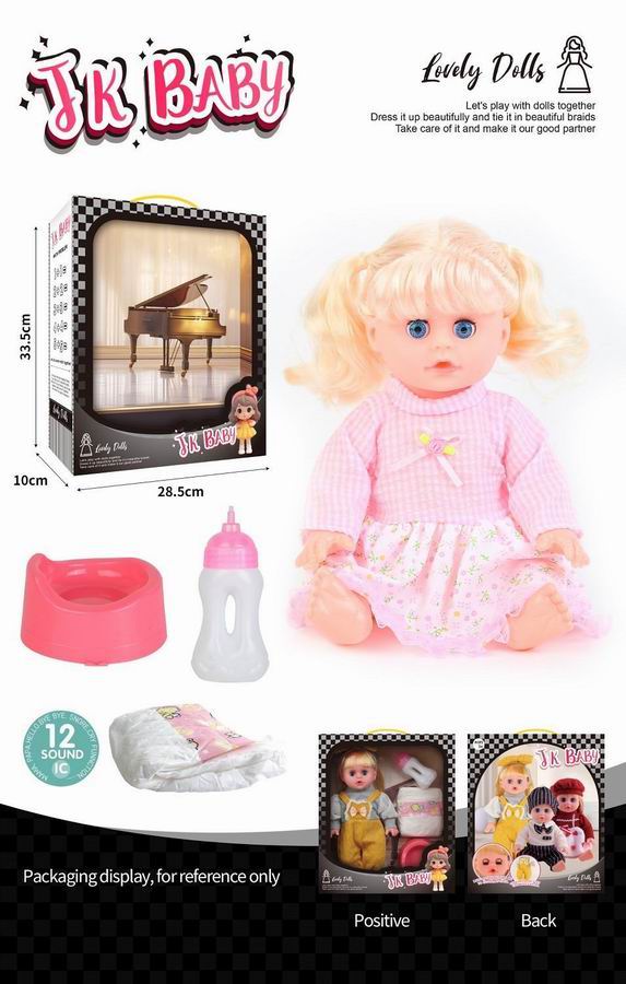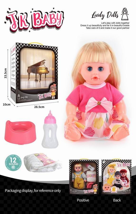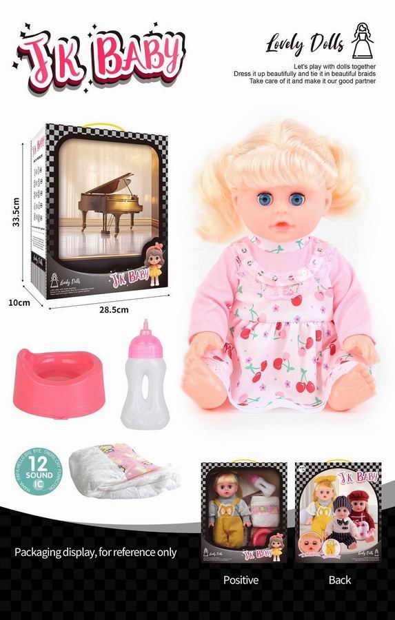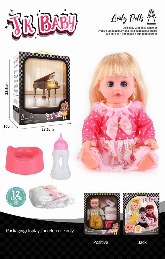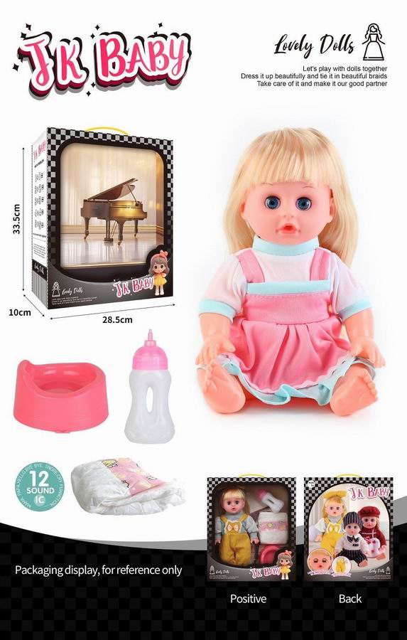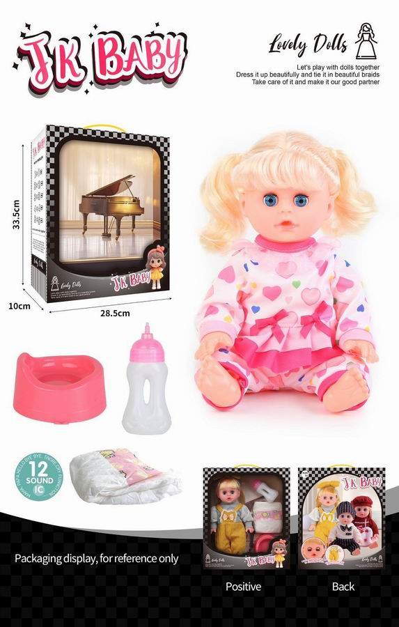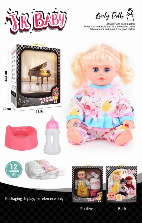 14寸活眼公仔 娃娃喝水尿尿带12声IC 奶瓶、尿布、马桶 |