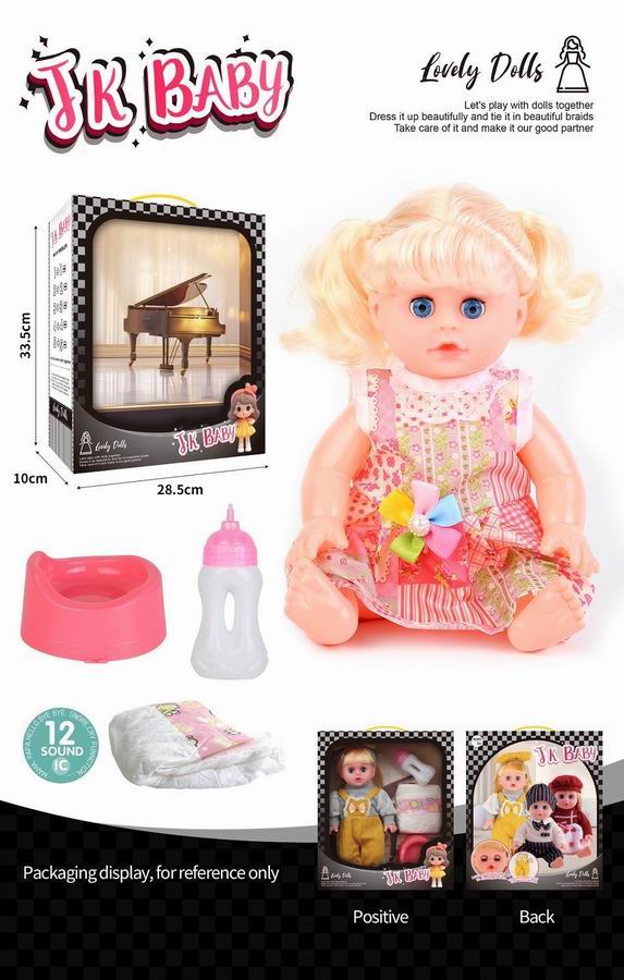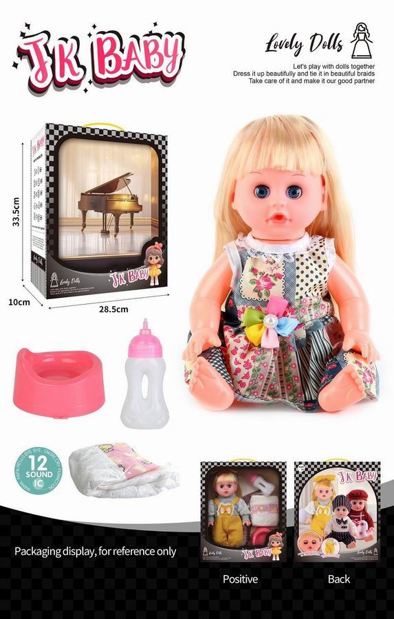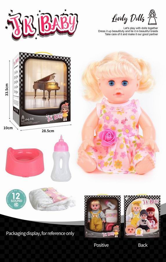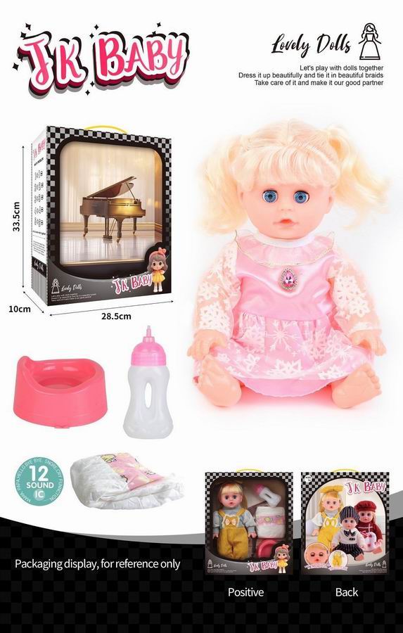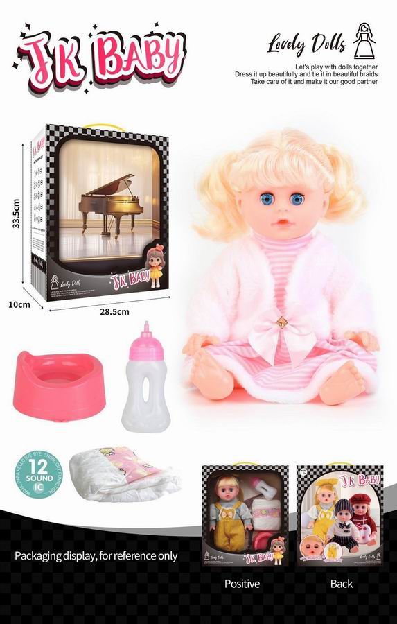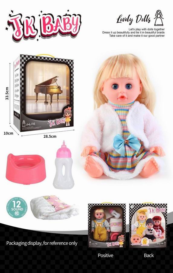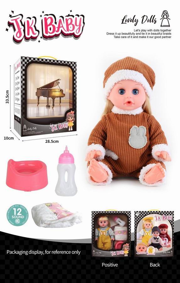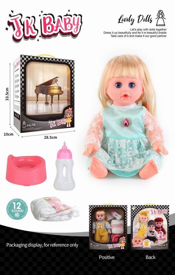 14寸活眼公仔 娃娃喝水尿尿带12声IC 奶瓶、尿布、马桶 |