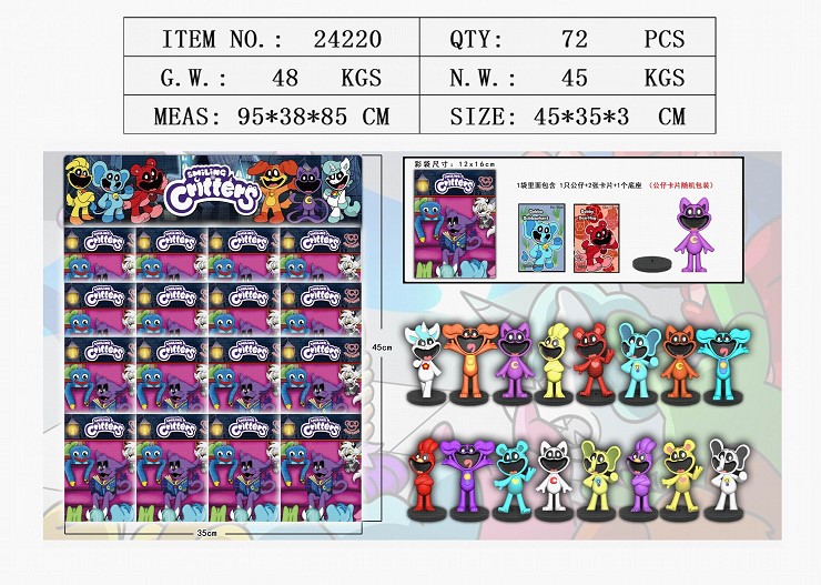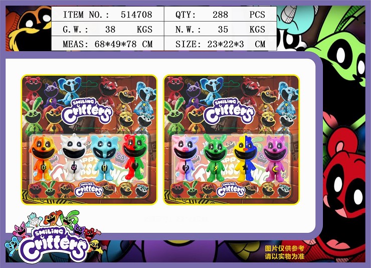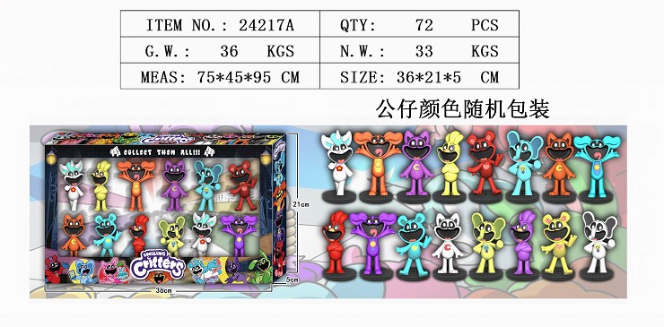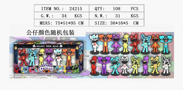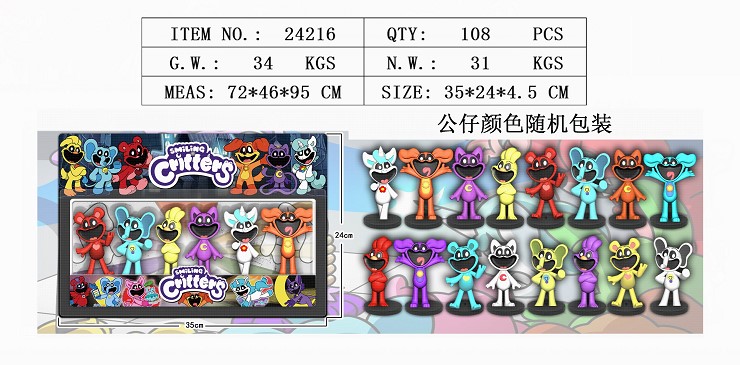 3.5寸恐怖微笑动物6只+3.5寸波比6只+底座 |