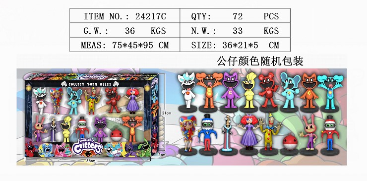 3.5寸恐怖微笑动物6只+3.5寸神奇数字马戏团6只+底座 |