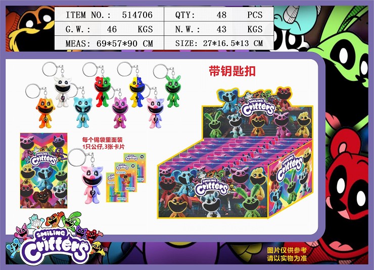 24彩袋装2.5寸匙扣恐怖微笑动物+3张卡片(8款随机) |