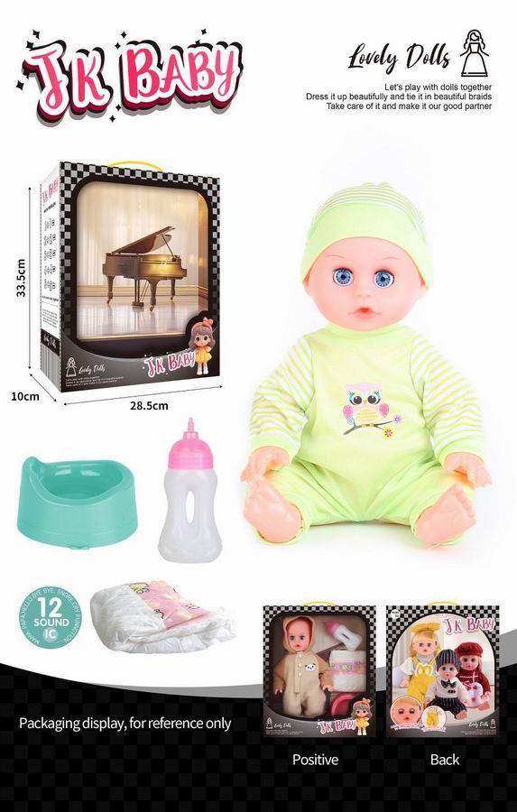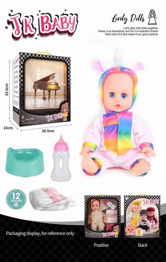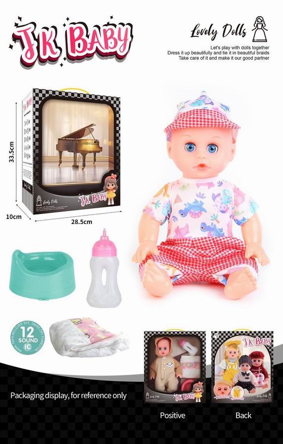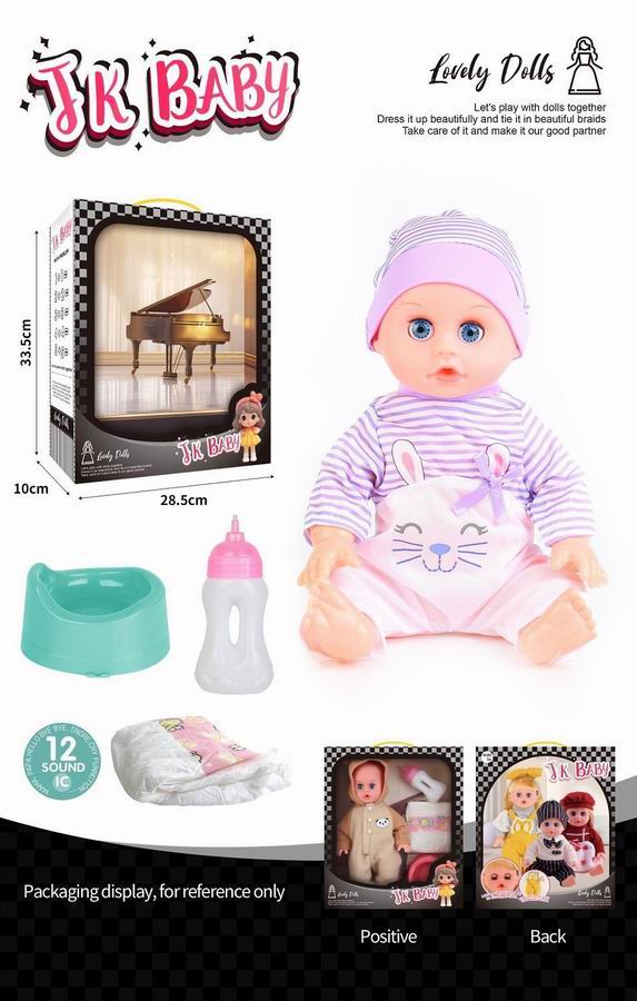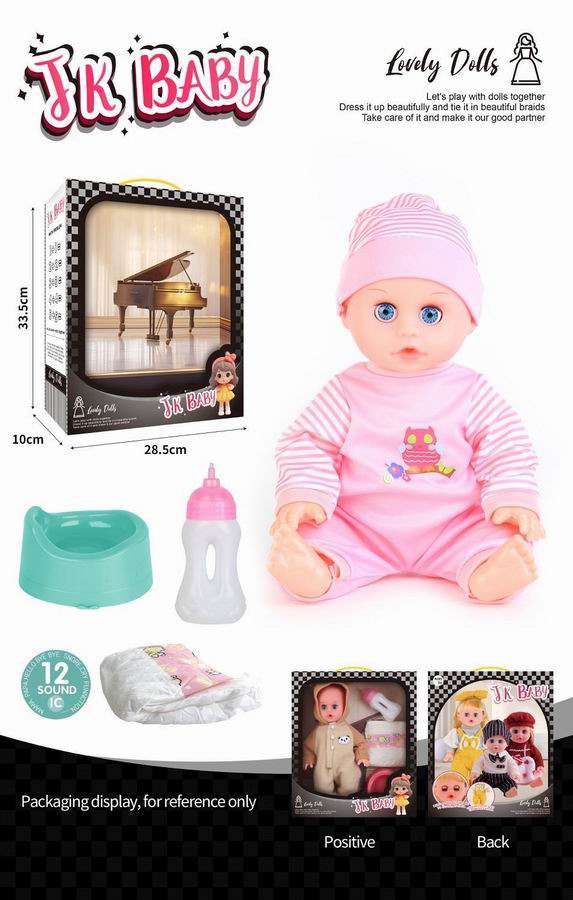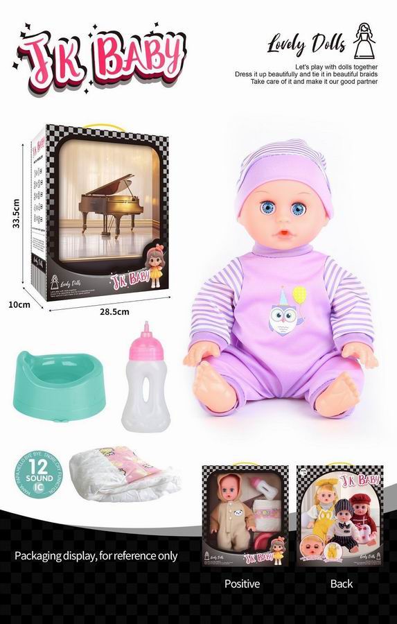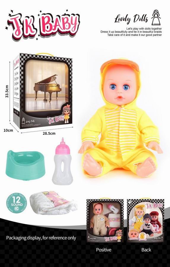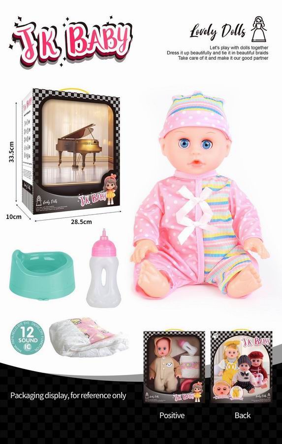 14寸活眼公仔 娃娃喝水尿尿带12声IC 奶瓶、尿布、马桶 |