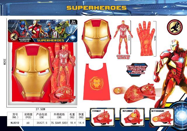 钢铁侠灯光面具+灯光公仔+披风+弹射器带手套