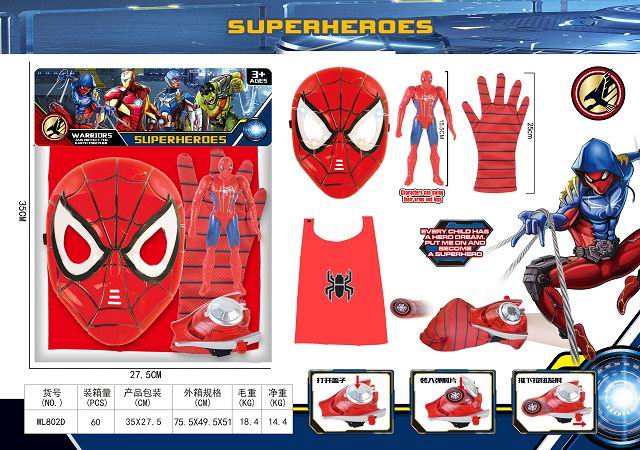 蜘蛛侠灯光面具+灯光公仔+披风+弹射器带手套