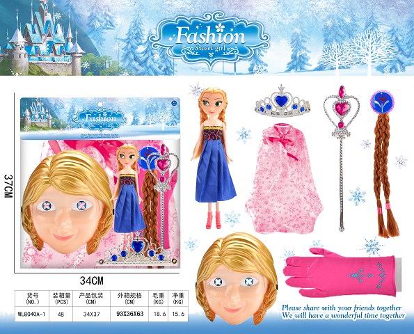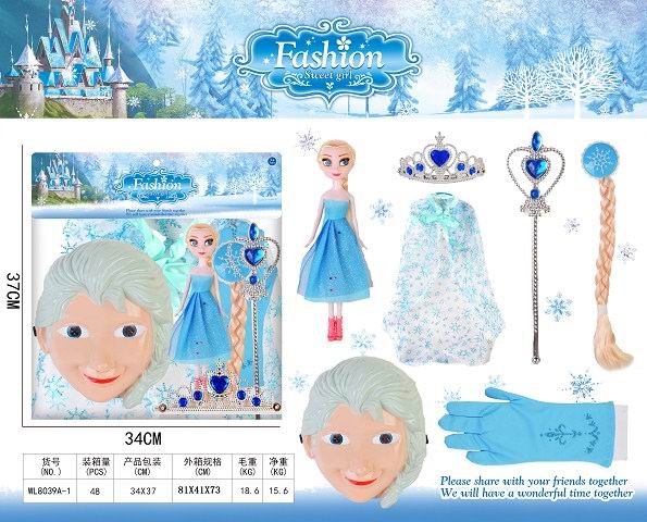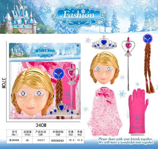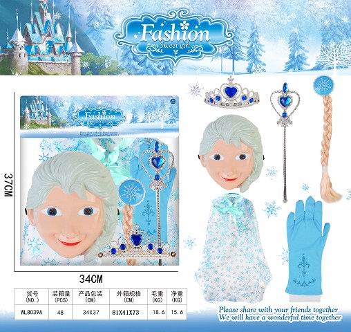 冰雪奇缘灯光面具+公仔+衣服+手套+头发配皇冠权杖