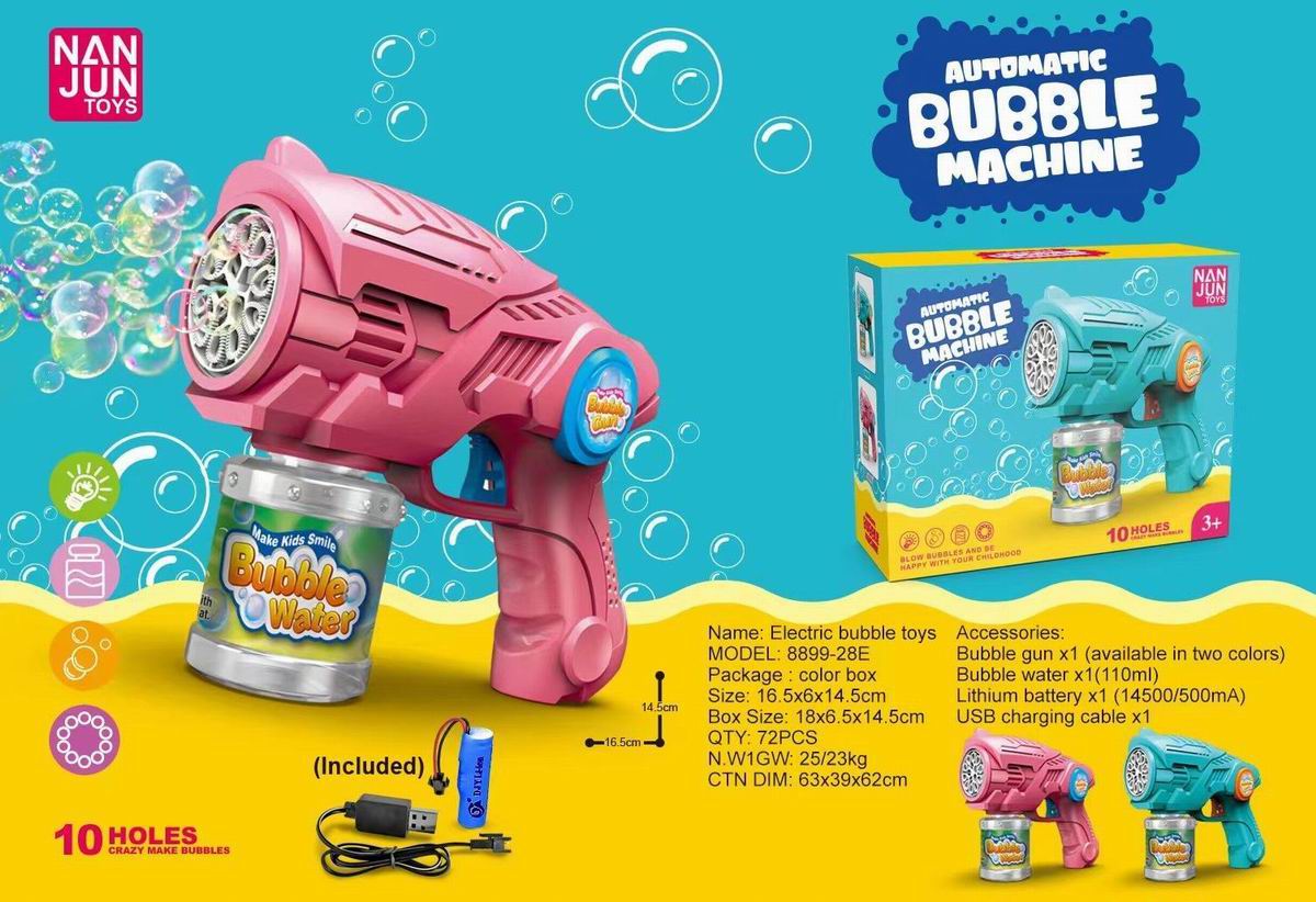 10孔太空泡泡枪 (配14500锂电500毫安+USB充电线+110ML泡水1瓶) |