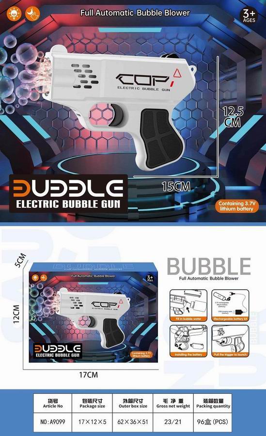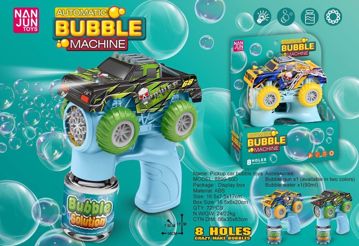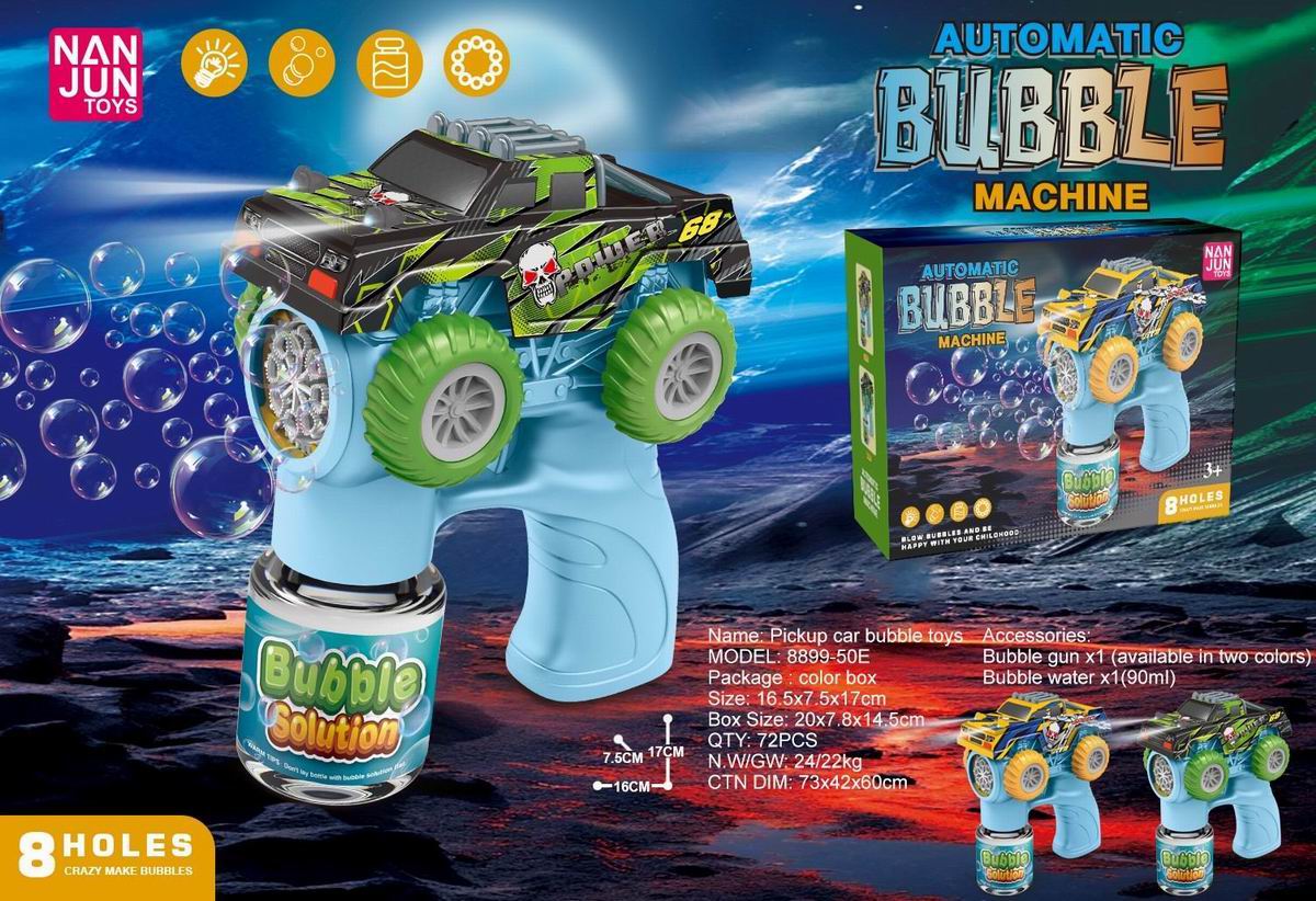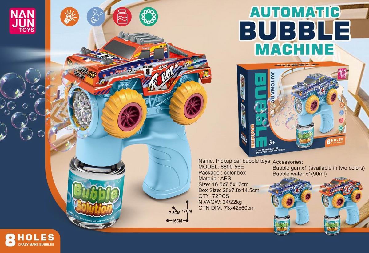 8孔皮卡车泡泡枪带灯光 (配1瓶90ML泡水)使用4颗5号电池不包/材料ABS/2色混装 |