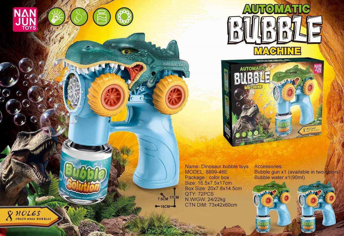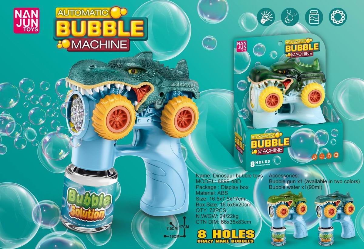 8孔恐龙车泡泡枪带灯光 (配1瓶90ML泡水)使用4颗5号电池不包/材料ABS/2色混装 |