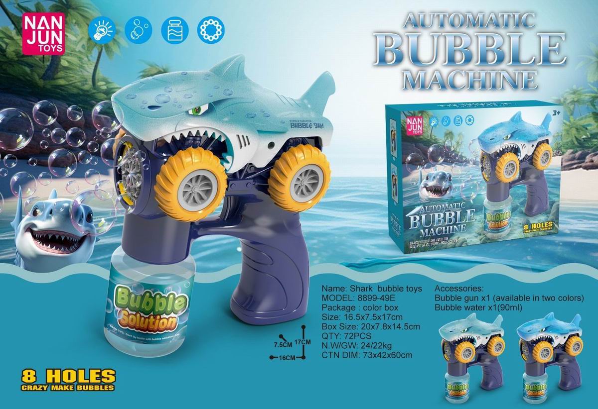 8孔鲨鱼车泡泡枪带灯光 (配1瓶90ML泡水)使用4颗5号电池不包/材料ABS/2色混装 |