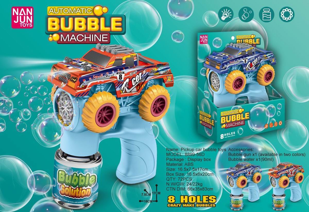 8孔皮卡车泡泡枪带灯光 (配1瓶90ML泡水)使用4颗5号电池不包/材料ABS/2色混装 |