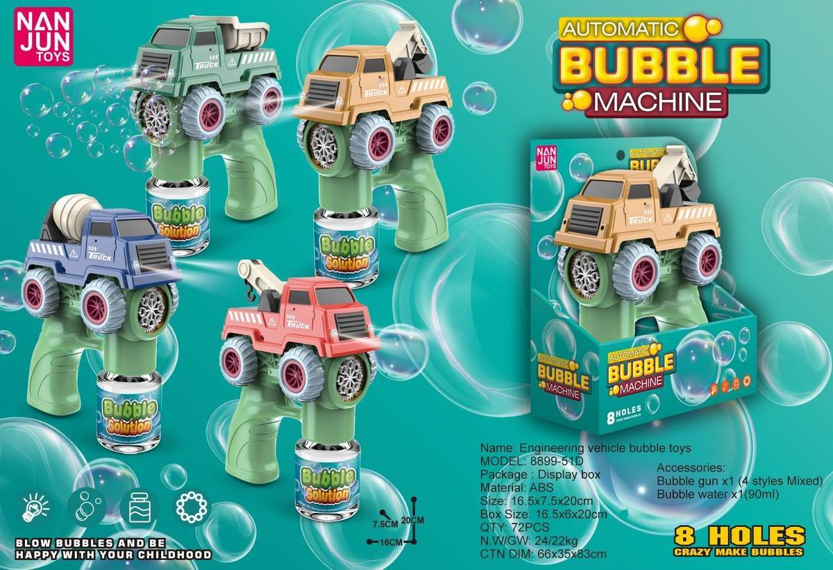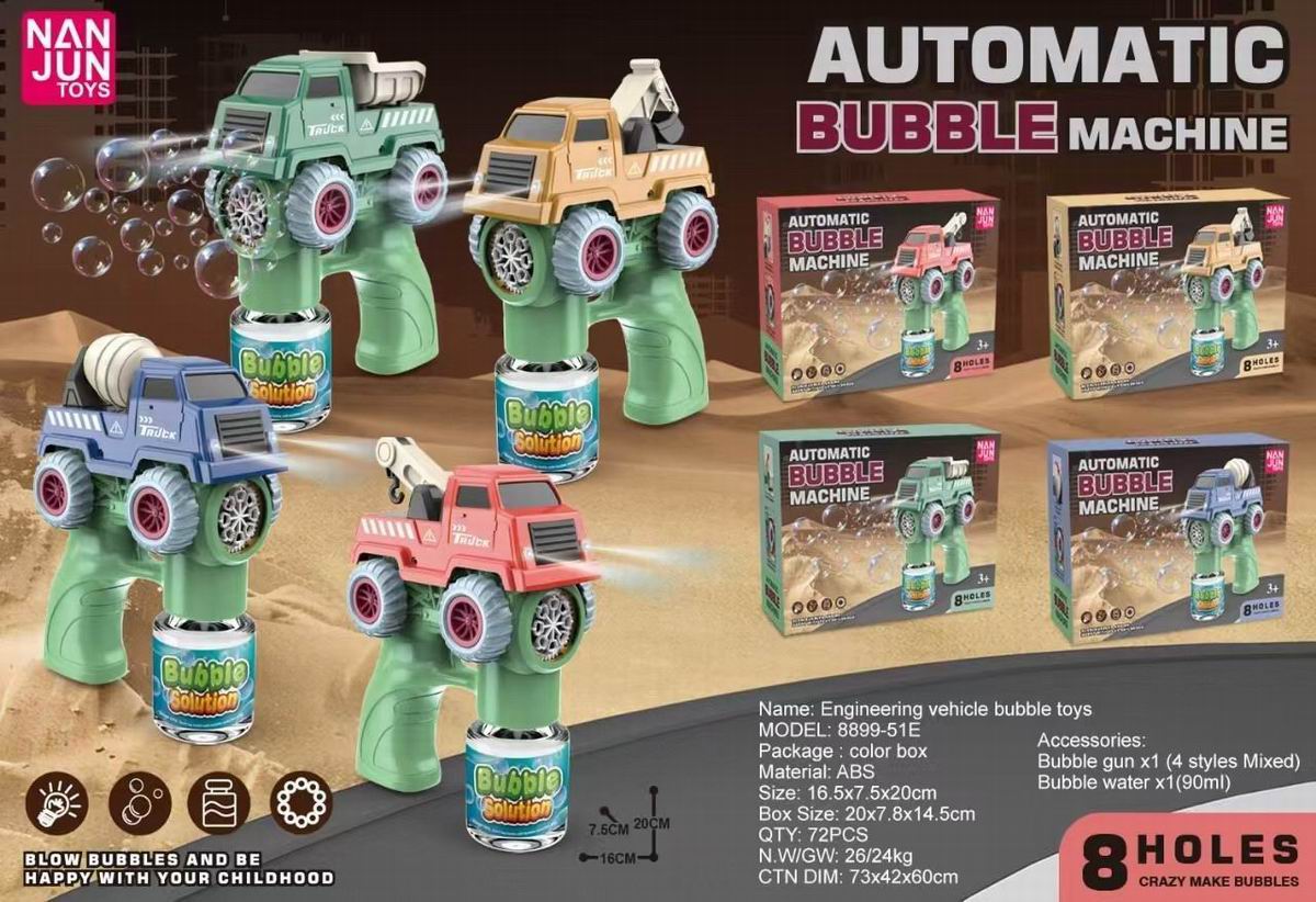 8孔工程车泡泡枪带灯光 (配1瓶90ML泡水)使用4颗5号电池不包/材料ABS/4款混装 |