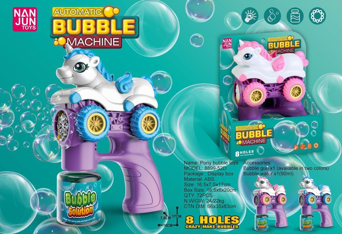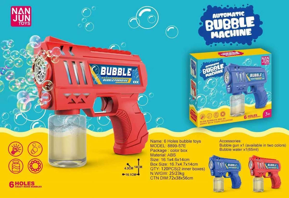 8孔小马车泡泡枪带灯光 (配1瓶90ML泡水)使用4颗5号电池不包/材料ABS/2色混装 |