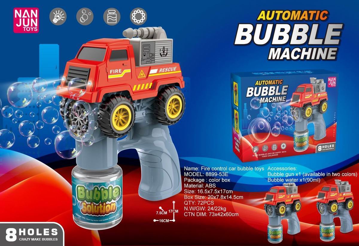 8孔消防车泡泡枪带灯光 (配1瓶90ML泡水)使用4颗5号电池不包/材料ABS/2色混装 |