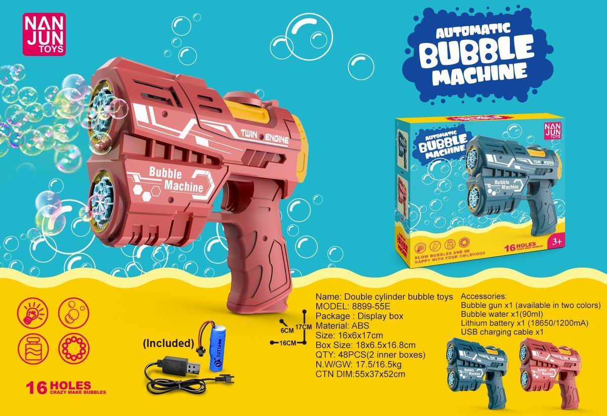 16孔双缸泡泡枪带灯光 (配1瓶90ML泡水)使用3.7V18650锂电池包电/ABS材料/3款混/不接亚马逊订单 |