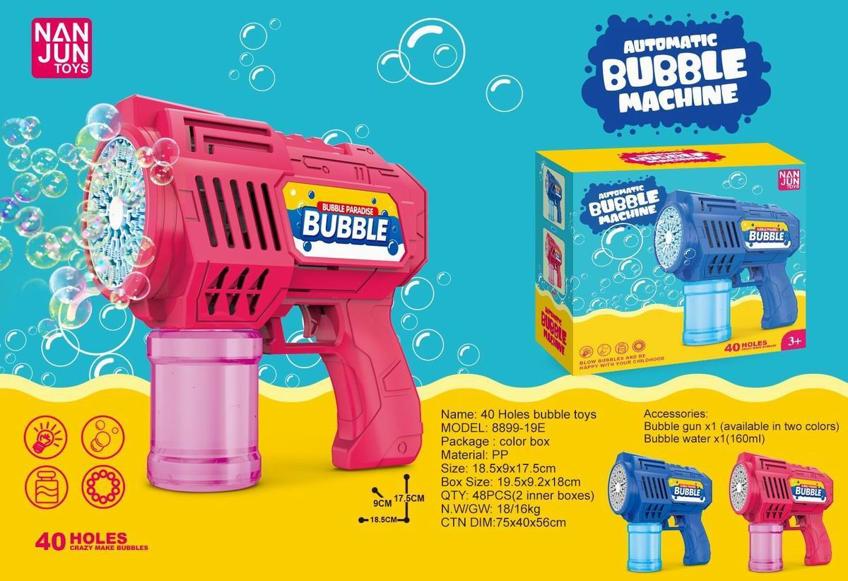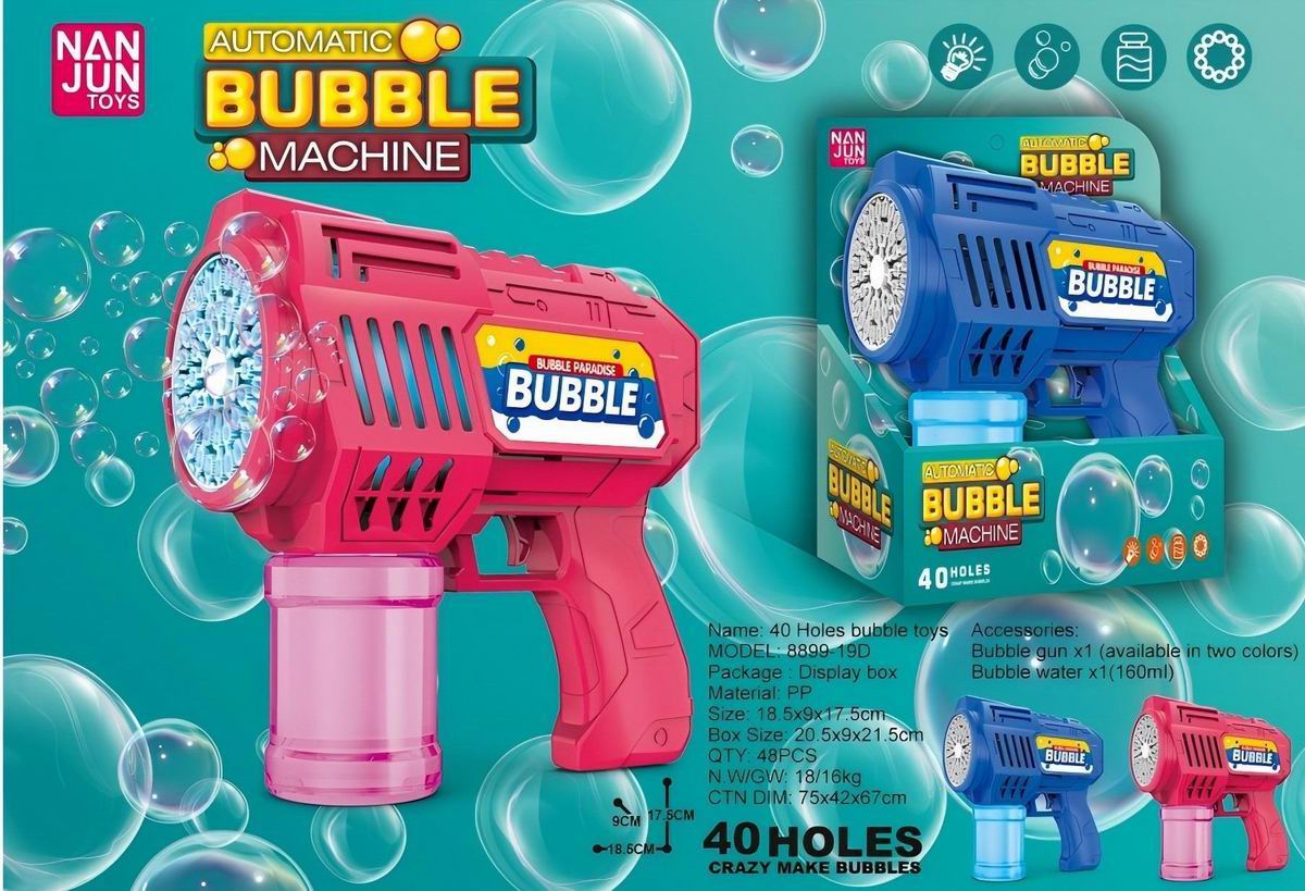 40孔泡泡枪/配1瓶160ML泡泡水/使用4节5号电池不包/2色混装 |