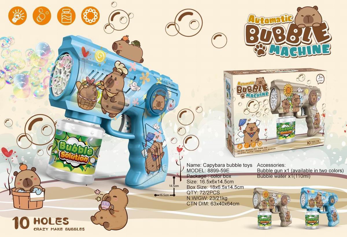10孔卡皮巴拉泡泡枪/2色混/4节5号电池不包/配1瓶110ML水 |