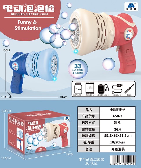 全自动出泡33孔泡泡枪(配置锂电池1,USB充电线1,贴纸1对,螺丝刀1,浓缩液2包) |