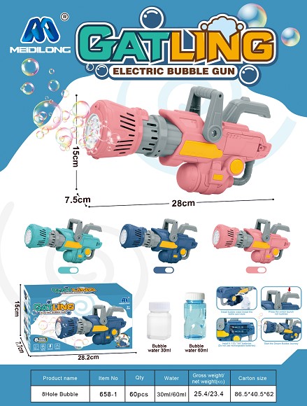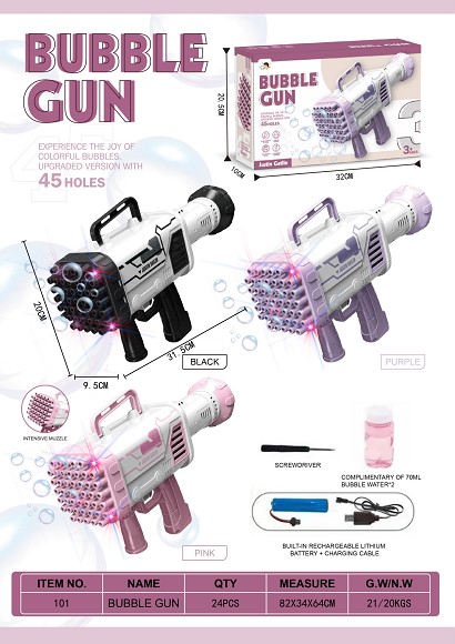 (英文)N+孔全自动泡泡枪,三灯光,无音乐(锂电充电池) |