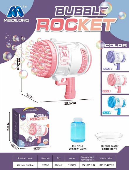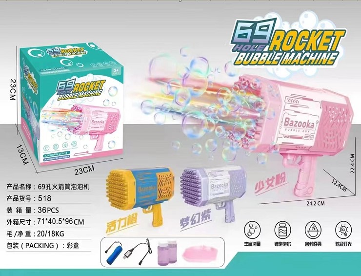 (英文)76孔灯光版太空火箭筒泡泡枪(锂电充电池) |