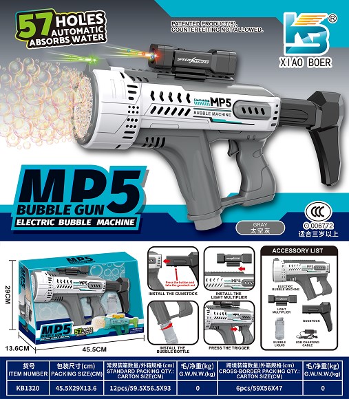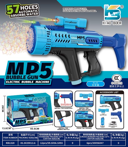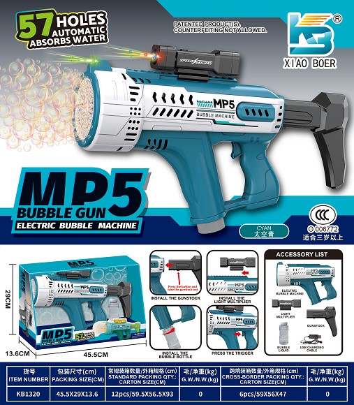 MP5 57孔自动吸水 炫彩灯光泡泡机 |