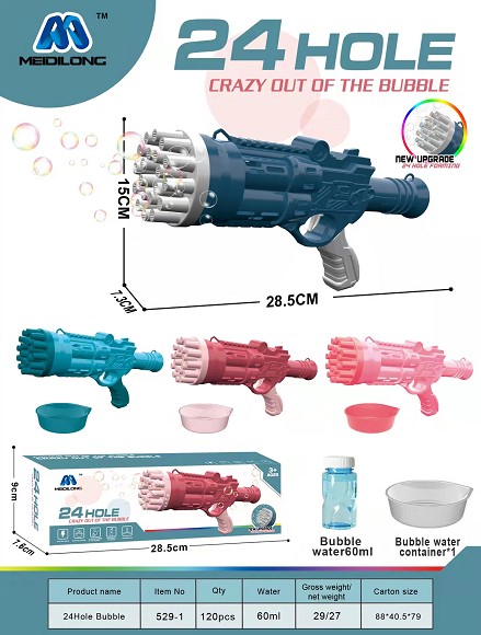 (英文)24孔实色泡泡枪(不含自装3节AA) |