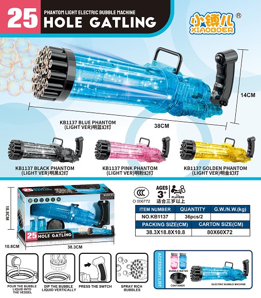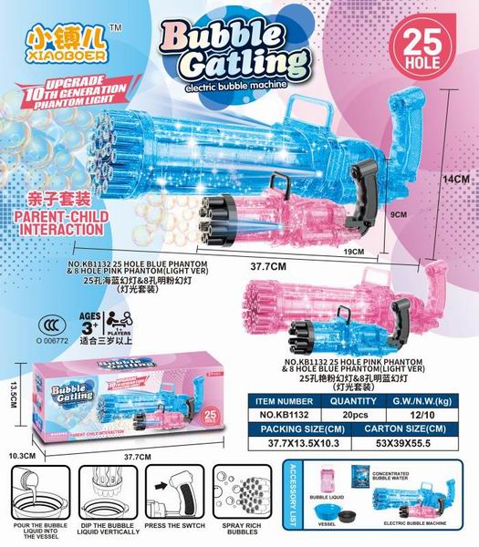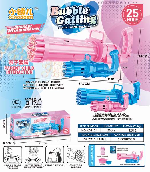 25孔蓝色&8孔粉色 电动加特林泡泡机