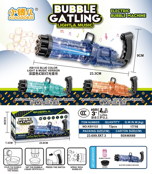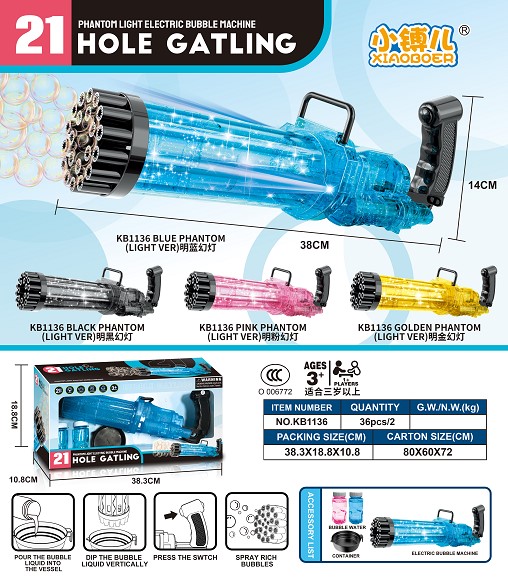 13孔幻彩灯光音乐 电动加特林泡泡机