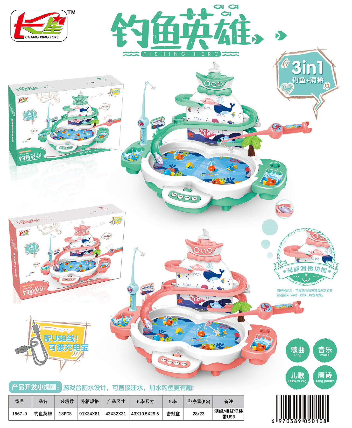 河豚电动音乐钓鱼桌(3色混装)