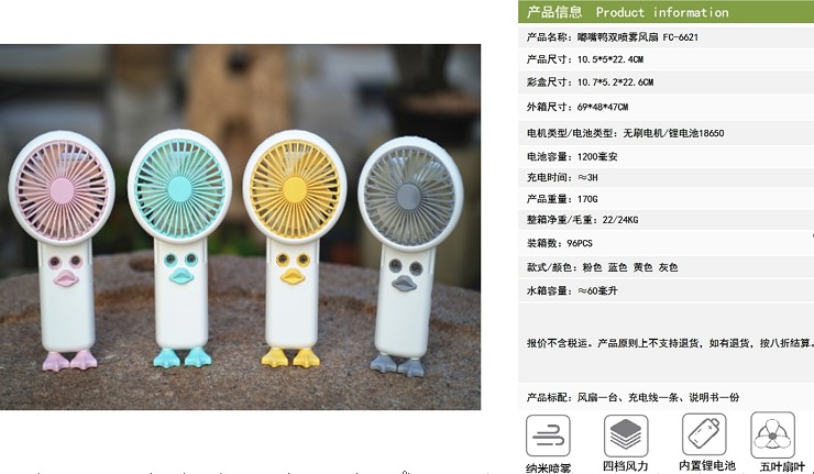 嘟嘴鸭双喷雾风扇1200毫安四档