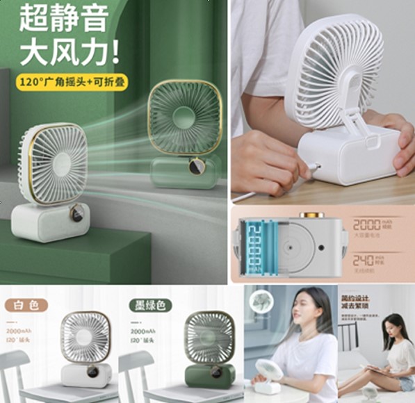 Folding fan 台式折叠风扇 含1200mah电池 PP材质