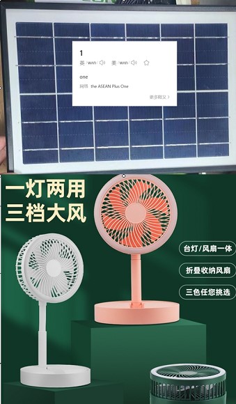 伸缩杆风扇 内置6000mah电池 ABS材质+太阳能板