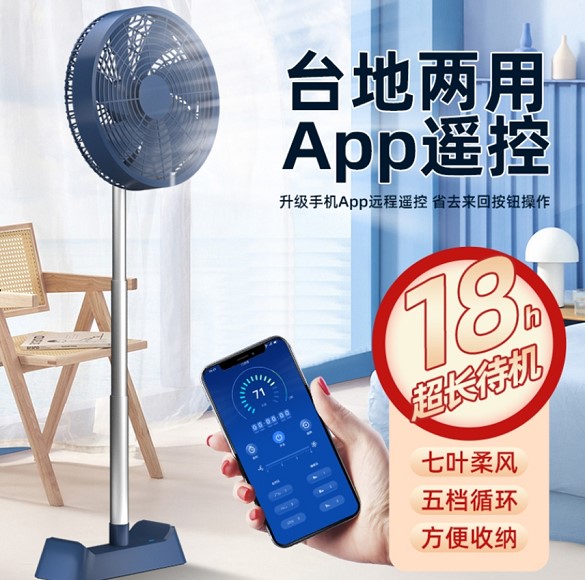 伸缩杆风扇 内置6000mah电池 ABS材质
