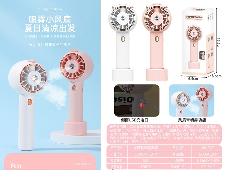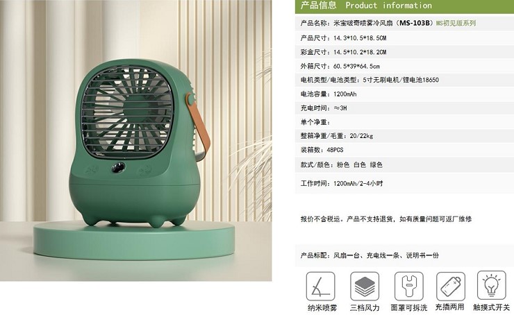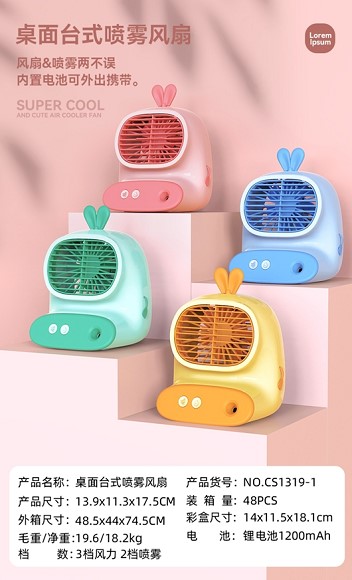 小兔桌面台式喷雾充电风扇1200毫安三档 |