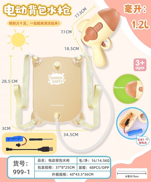 带声效灯光电动水枪背包款 (1500ML背包手动储水+瞄准镜)锂电版