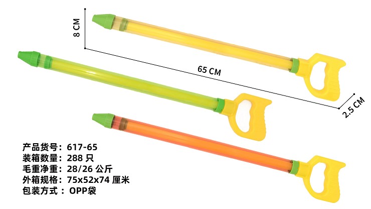 65CM透明手拉水炮(直径2.5)(展示盒/24只散装)水枪/戏水/沙滩玩具 |