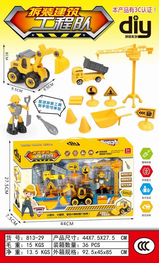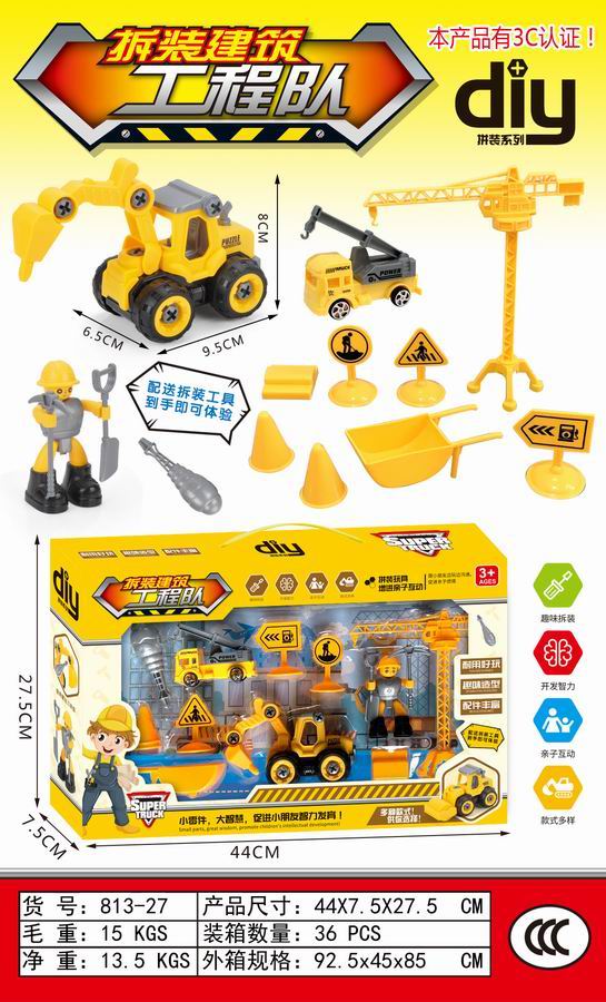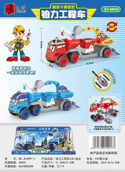 益智拆装-铂力工程车 (组合3合1套装2款2色混装)