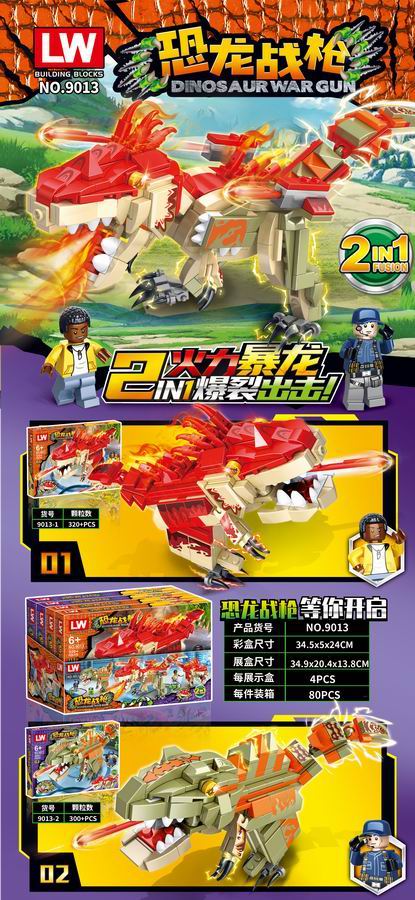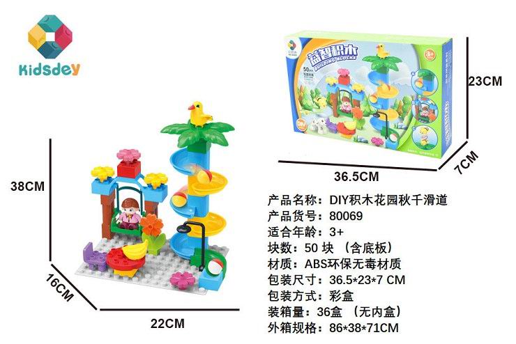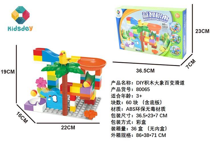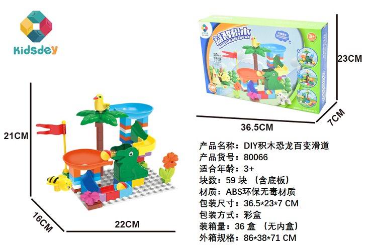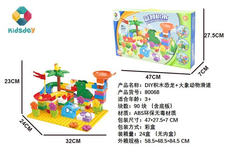 DIY积木恐龙+大象动物滑道90PCS(含底板)