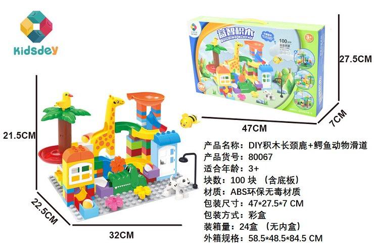 DIY积木长颈鹿+鳄鱼动物滑道100PCS(含底板)