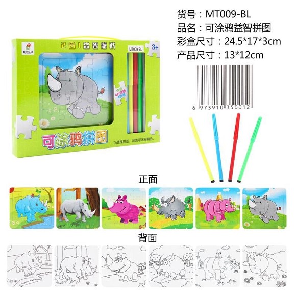 可涂鸦动物拼图(4拼图+4色笔)