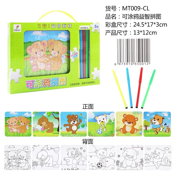 可涂小熊牛拼图(6拼图+4色笔)