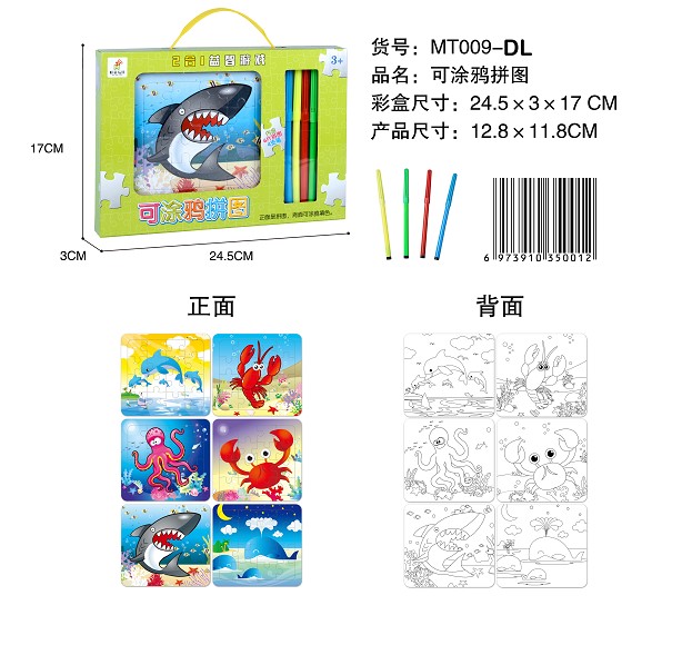 可涂海洋动物牛拼图(6拼图+4色笔)