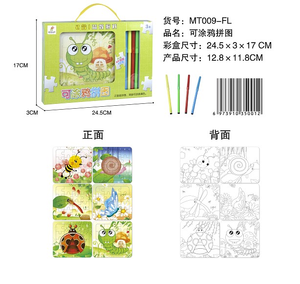 可涂鸦昆虫拼图(6拼图+4色笔)