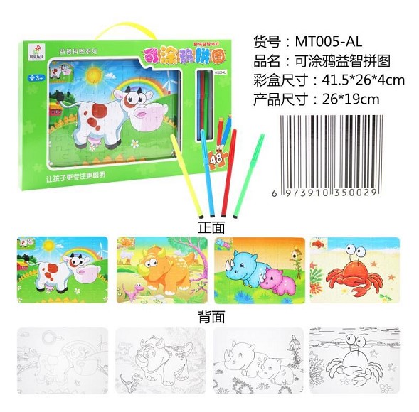 可涂鸦牟牛拼图(6拼图+4色笔)